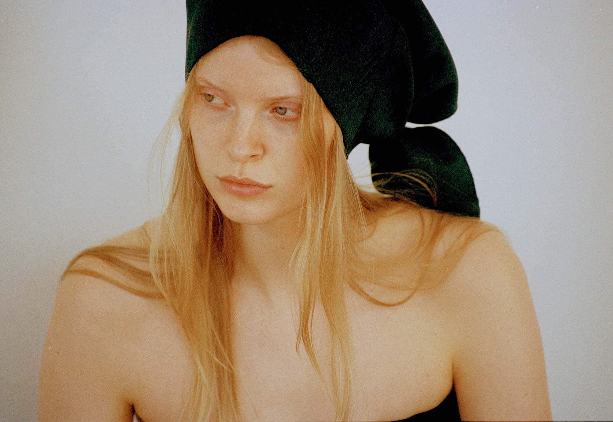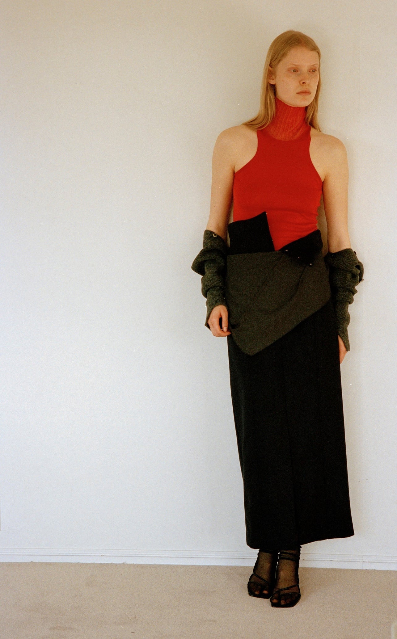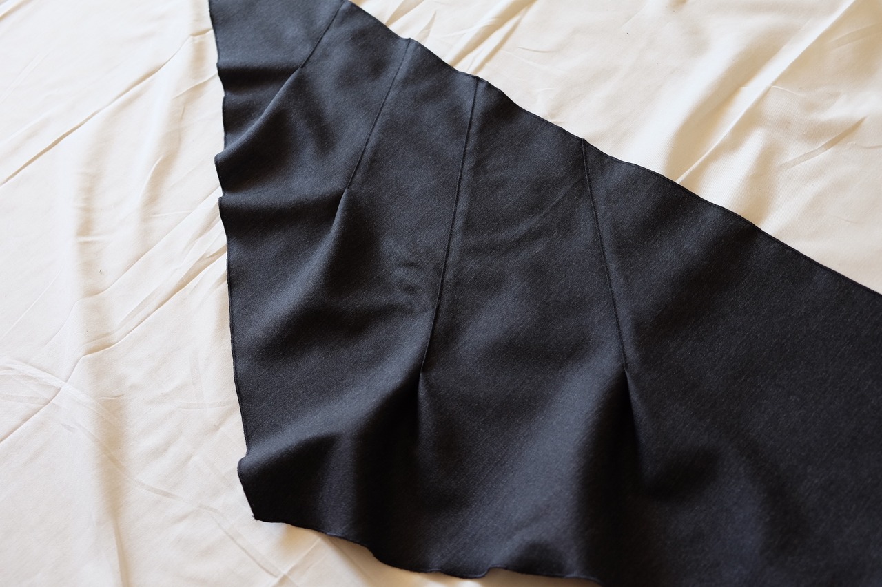 高密度に織り上げたことによる適度なハリ感とモヘア混ならではの微光沢感が特徴。首や頭、腰に使える汎用性のあるサイズにしております。タックデザイン。