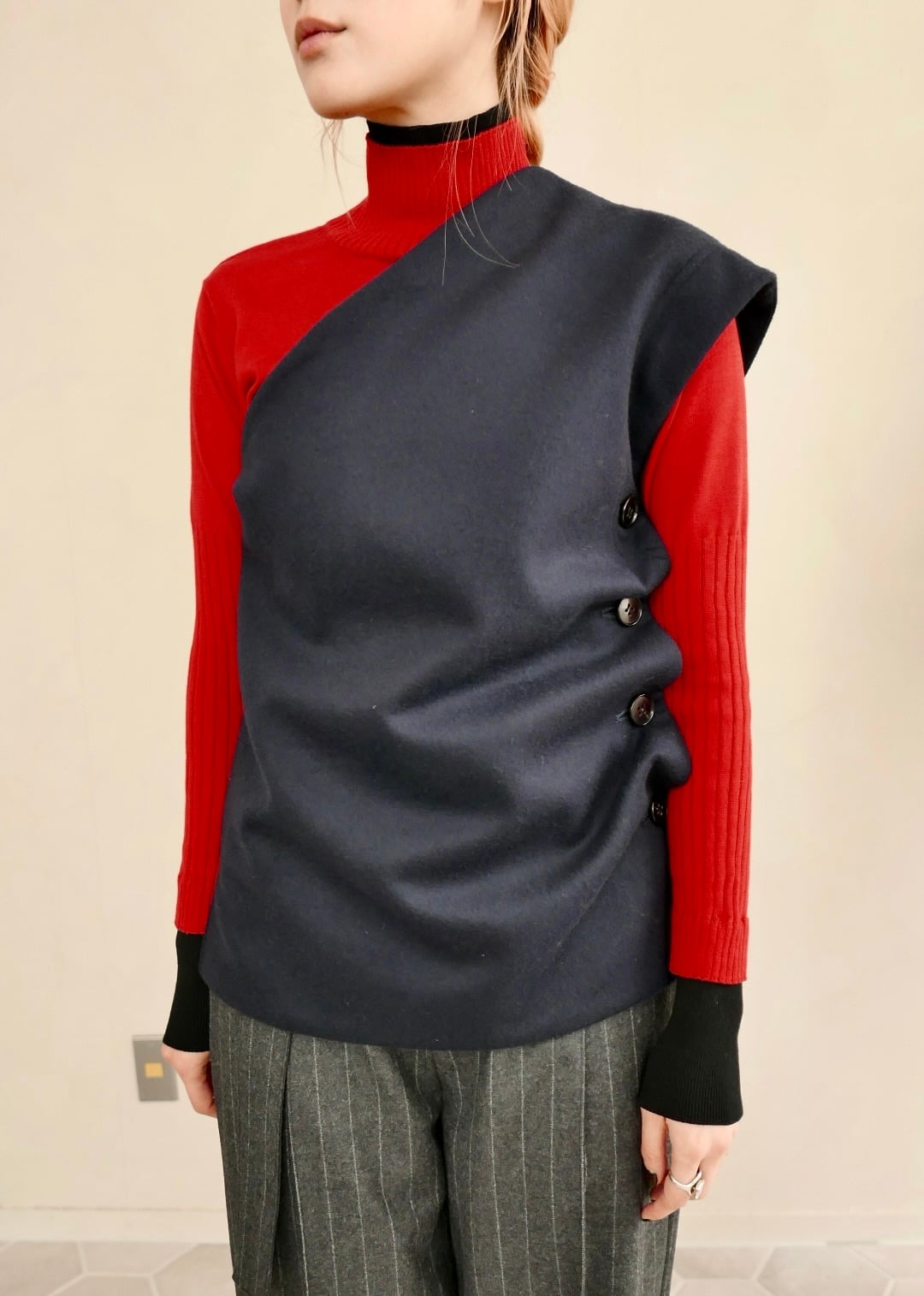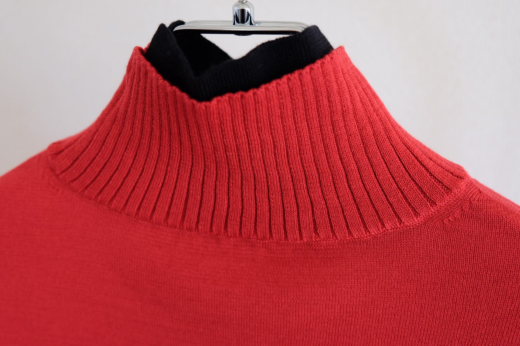 世界三大綿の一つでアメリカアリゾナ州で栽培された、繊維長が長く吸水性があり柔らかいスーピマ綿に、極上の家蚕と言われるペニーシルクをミックスして紡績した糸を使用。レイヤードしたようなデザイン。
